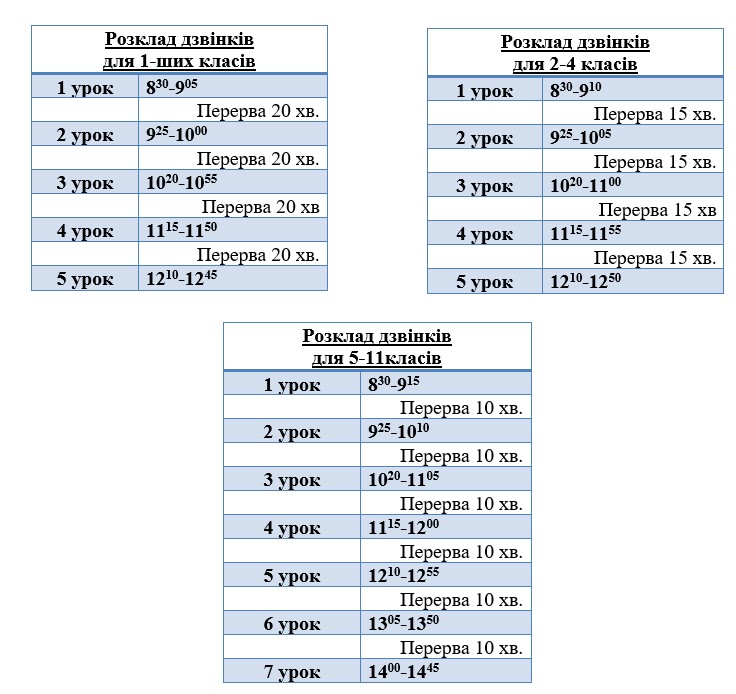 РОЗКЛАД УРОКІВ