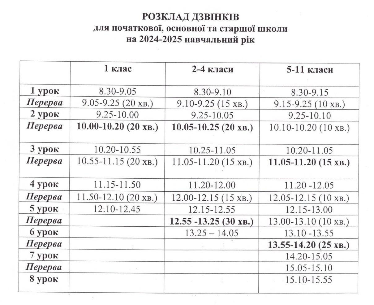 РОЗКЛАД ДЗВІНКІВ